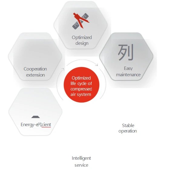 आमची ऑइल-फ्री स्क्रू एअर कंप्रेसर प्रणाली विशेषतः 46°C वर ऑपरेट करण्यासाठी डिझाइन केलेली आहे, जी केवळ 40°C वर योग्य असलेल्या बहुतेक डिझाइनपेक्षा श्रेष्ठ आहे.