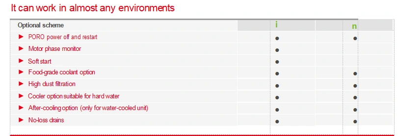 आमचे कंप्रेसर फूड-ग्रेड कूलंट्स, उच्च धूळ गाळण्याची प्रक्रिया आणि हार्ड वॉटर कूलर आणि कठोर वातावरणाशी जुळवून घेतलेले इतर पर्याय ऑफर करतात, जे तुमच्या एकाधिक अनुप्रयोग गरजा पूर्ण करू शकतात.